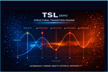 TSL Reference ist eine reine Containment-Demo-Engine. Sie zeigt, wie strukturelle Übergänge bewertet werden, ohne Schwellenwerte, ohne Machine Learning und ohne historische Speicherung. Der aktuelle Zustand genügt, um strukturelle Kompatibilität oder Unmöglichkeit zu bestimmen.